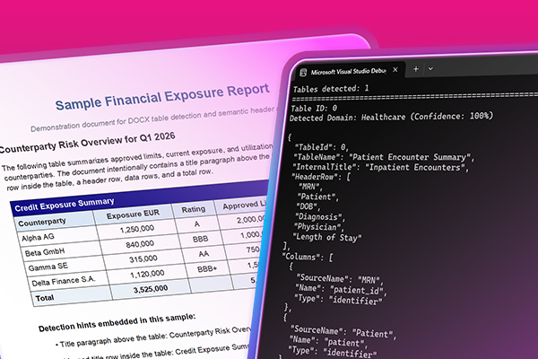 In this article, we build a domain-aware table extraction system using TX Text Control in C# .NET. The system automatically detects the table's domain, understands column semantics, and produces clean JSON output suitable for analytics systems, data imports, or AI pipelines.