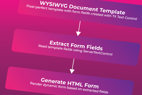 Learn how to generate PDFs from HTML forms in ASP.NET Core using a pixel-perfect WYSIWYG template. Extract form fields from a document, render a dynamic HTML form, and merge the data server-side to produce professional PDF documents.