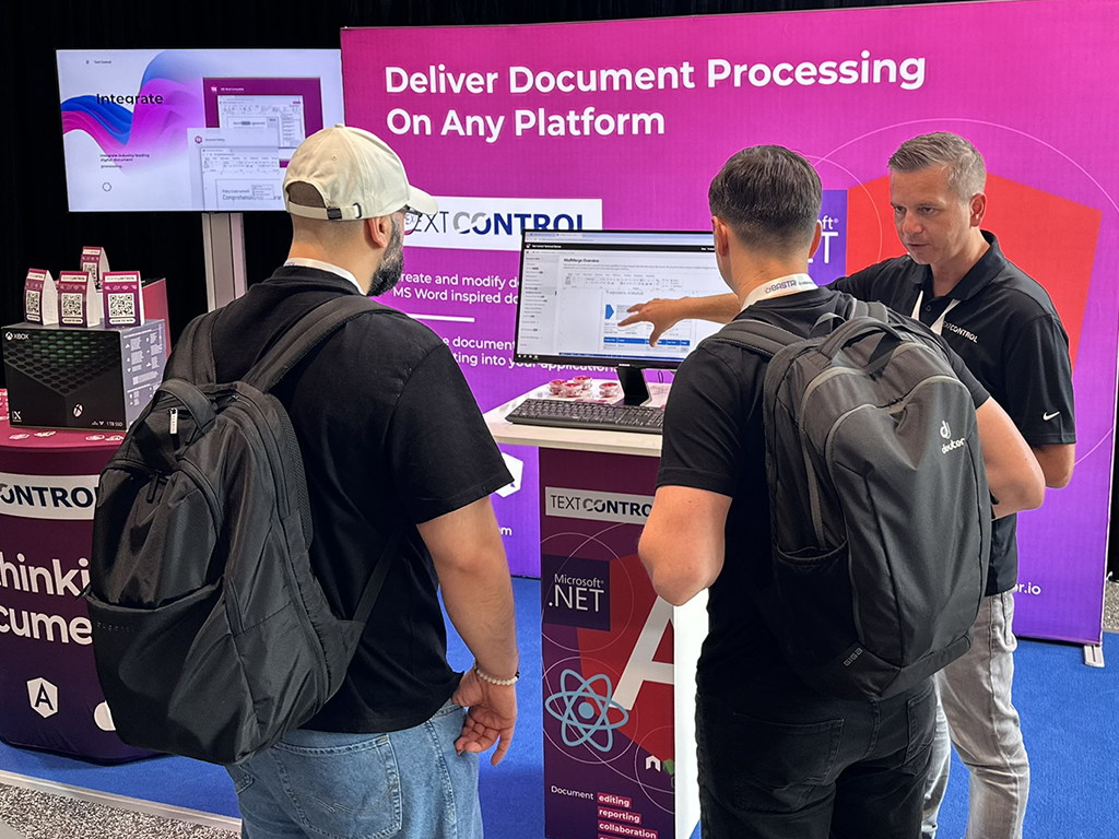 If you're interested in scalable web apps, automated reporting, or ensuring compliance with standards like PDF/A-3b and PDF/UA, visit our booth to see Text Control in action.