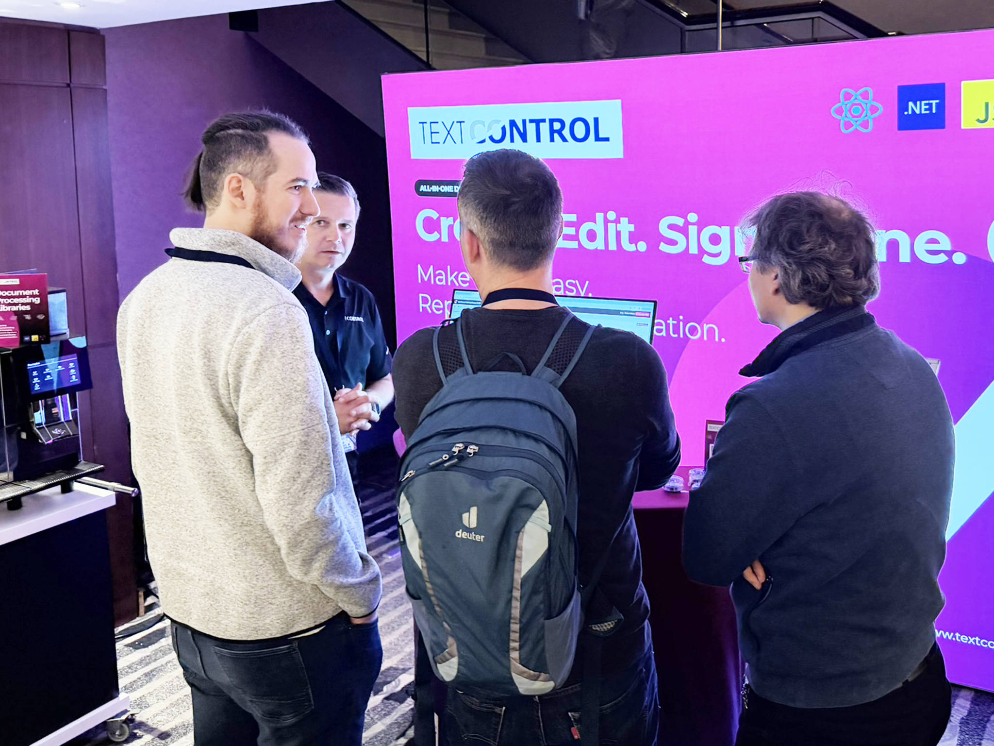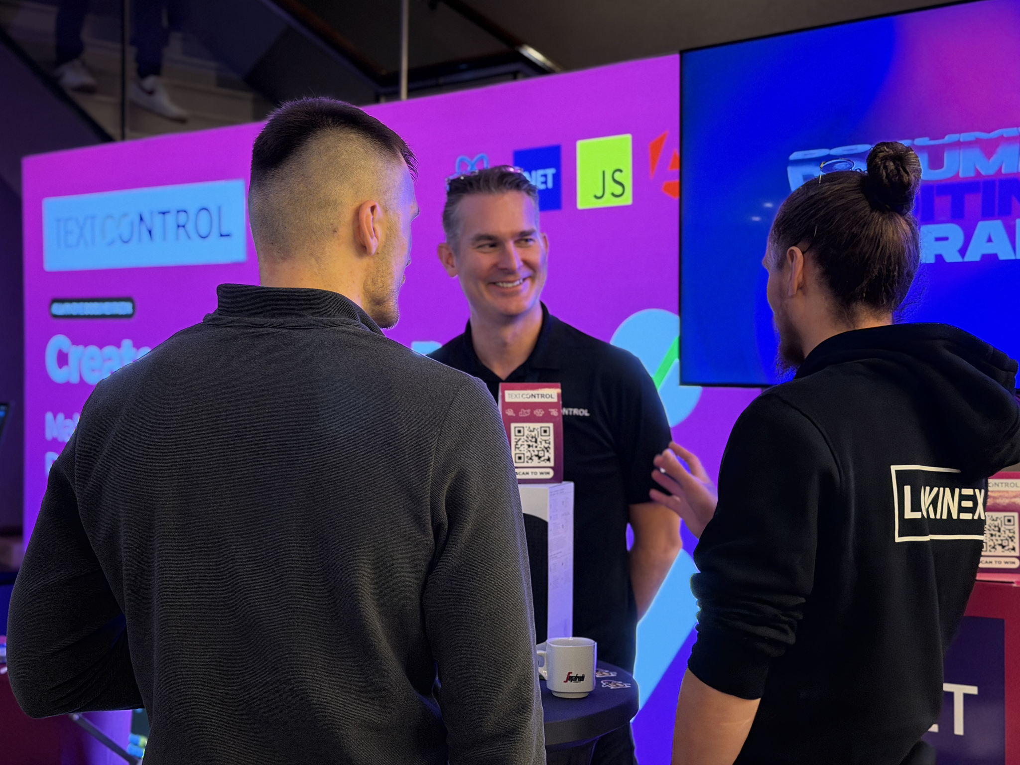 At our booth, we presented our new Text Control release, which includes support for the latest .NET platform, significant enhancements to PDF and PDF/UA workflows, and updated dialogs for the online document editor. We also demonstrated how developers can build scalable document pipelines on Windows and Linux with full feature parity. The feedback was extremely positive, and many visitors were impressed by the speed and accuracy of our MailMerge and large-volume processing capabilities.