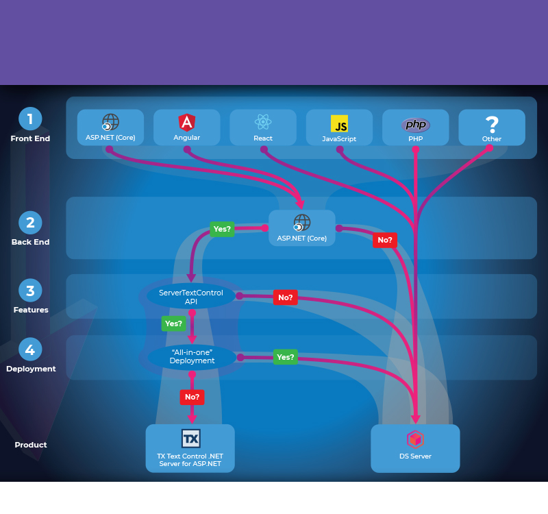 Text Control offers a variety of products, packages and technologies to add document processing into web applications developed in Angular, React, vanilla JavaScript, ASP.NET Core and .NET Framework ASP.NET.