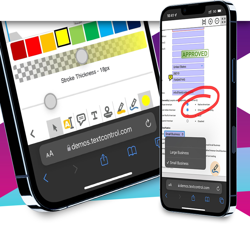 Businesses use the benefits that mobile devices deliver including improved productivity, efficiency and better work-life balance. Integrate document viewing, annotation and form filling features into your web applications.