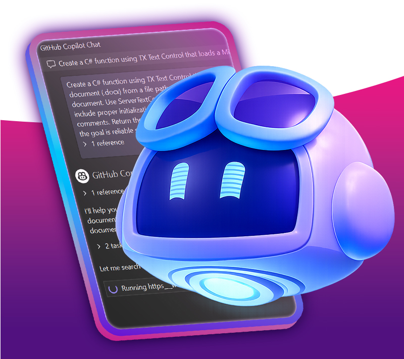 You can now ask your AI coding assistants to write code that interacts with the Document Editor, making it easier than ever for you to build powerful applications with TX Text Control. |