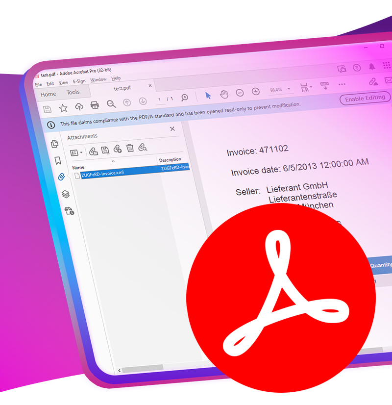 A more secure approach is to embed the XML invoice into a PDF/A-3 document and apply a digital signature or seal. This combines machine-readable structured data with a human-readable invoice while ensuring integrity. Any modification invalidates the signature, making tampering immediately visible and enabling reliable long-term archiving in .NET document workflows. |