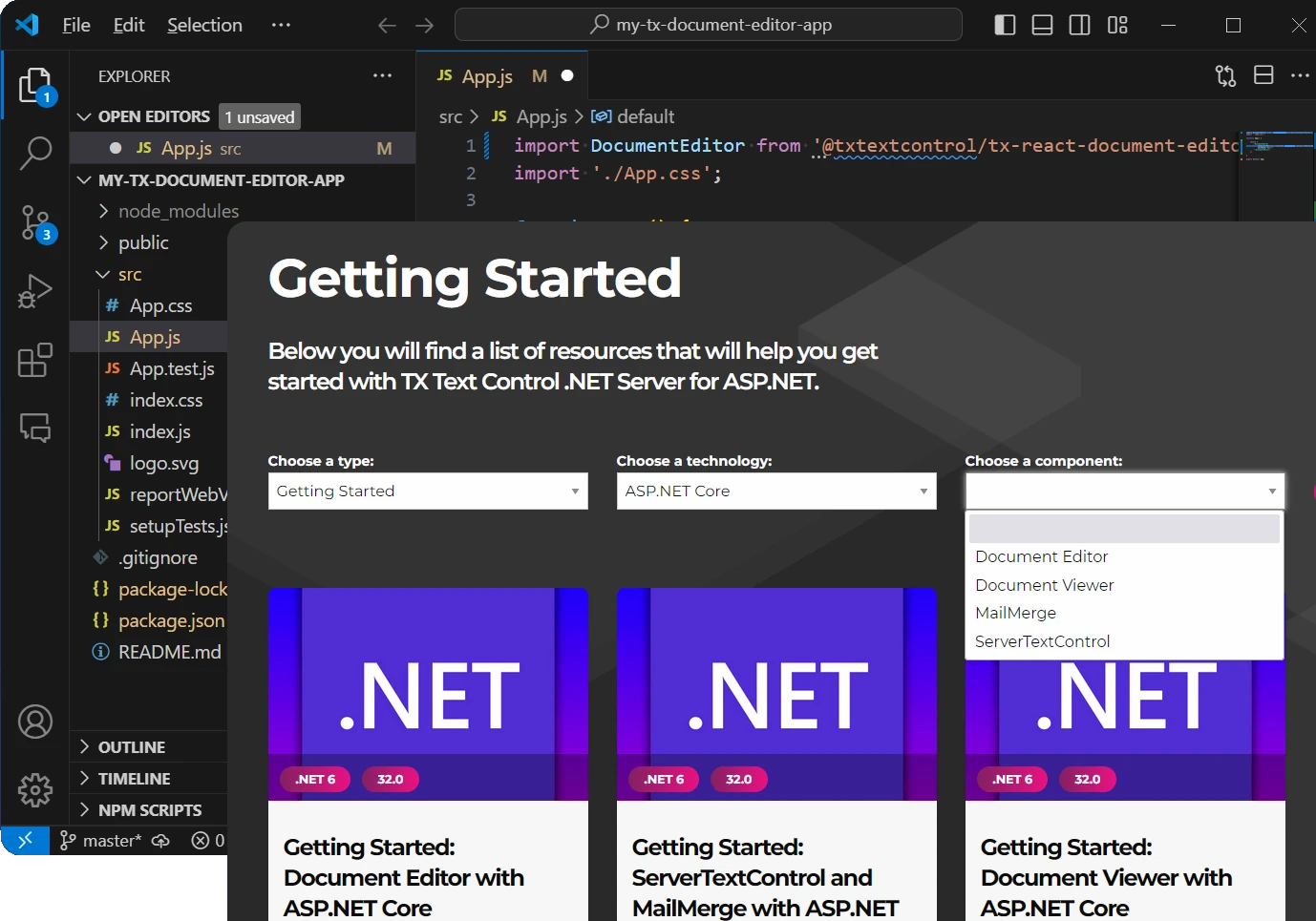 npm i @txtextcontrol/tx-react-document-editor