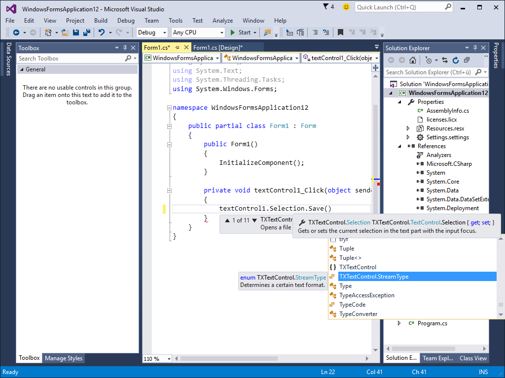 TX Text Control .NET for Windows Forms has been built from scratch to benefit from the object-oriented design of Visual Studio .NET. This enables developers to take advantage of TX Text Control's intuitive class design, resulting in more effective programming, shorter development cycles, and lower development costs.