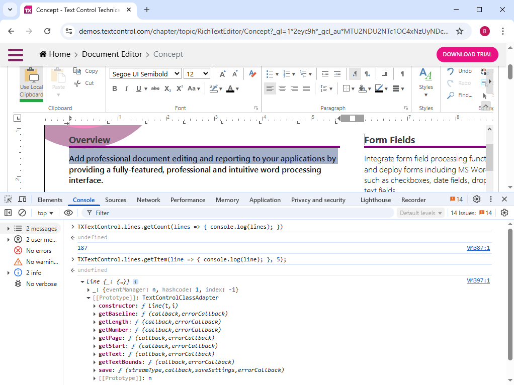 TX Text Control .NET for Windows Forms provides several line and character operations that can be performed directly from the program code.