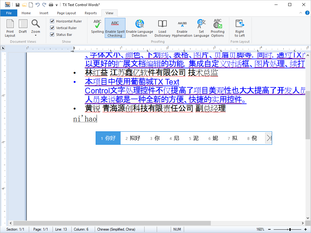 Thanks to TX Text Control .NET for Windows Forms's Unicode support, applications can be developed in a very wide range of languages. More details on supported languages are available upon request.