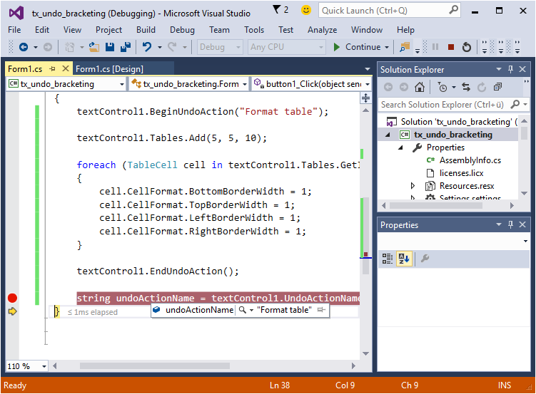 Define user-defined undo steps with custom names for grouped actions. A user-defined undo step can be defined with the new BeginUndoAction and EndUndoAction methods. All editing and formatting changes done between these methods belong to the undo operation. All these changes are undone or redone in a single step.