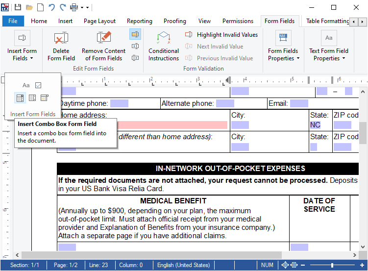 Create and process MS Word-compatible form fields for documents. With TX Text Control .NET for WPF X18, we introduced form field processing functionality to create and deploy forms including MS Word-compatible fields such as checkboxes, date fields, drop-down boxes, and form text fields.